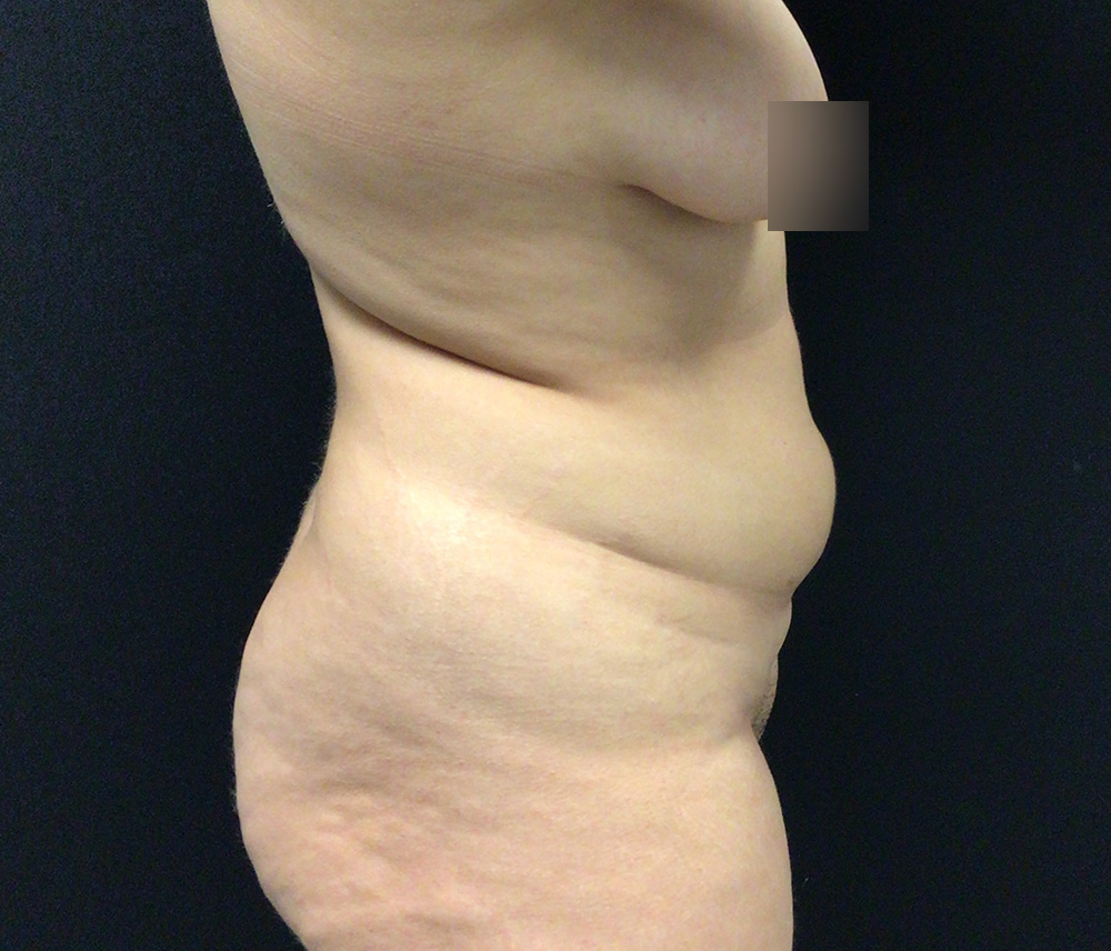 Before and After 1 Year Liposuction to Abdomen and Flanks & Breast Augmentation